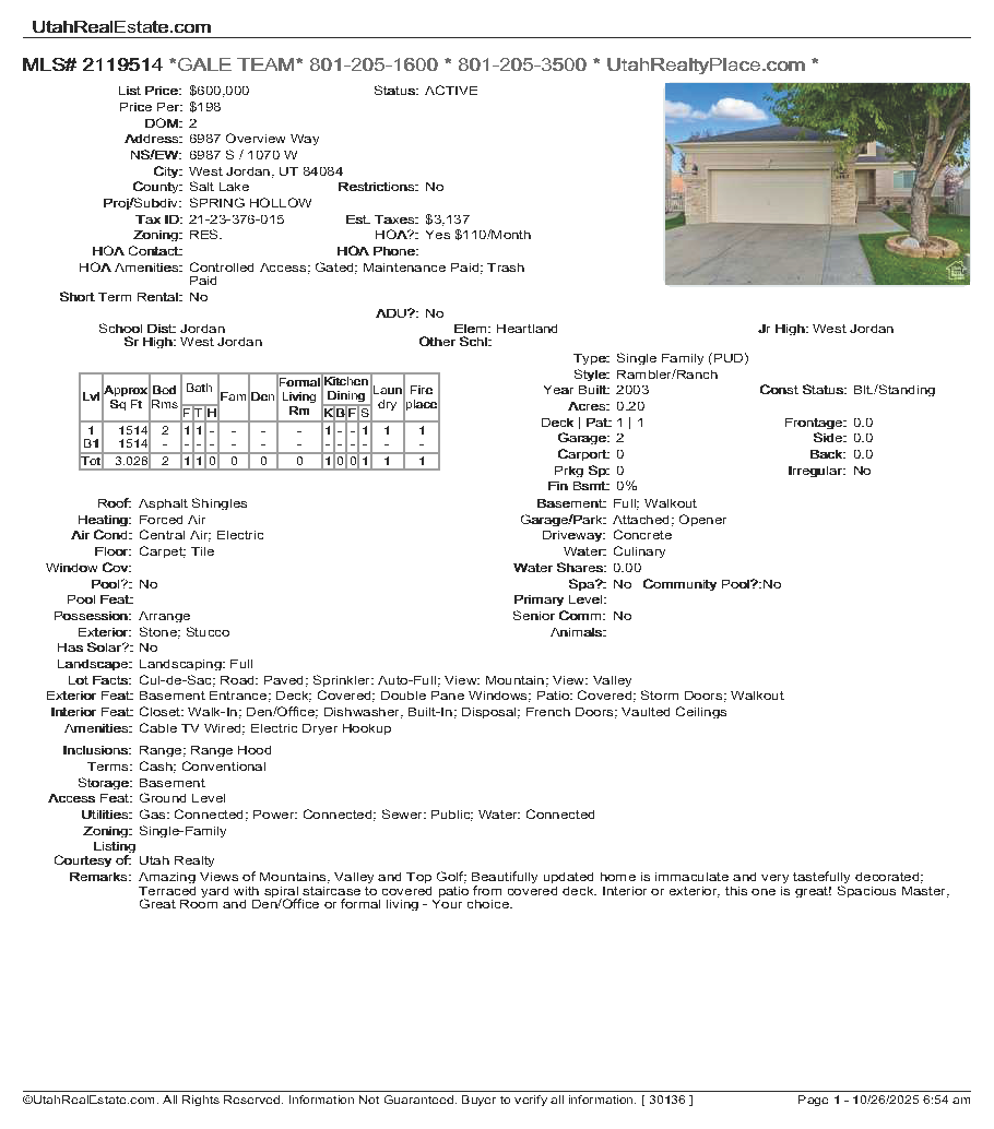 Whether hosting neighbors or savoring peaceful moments in your secluded backyard, this property truly has it all: big-ticket improvements, panoramic mountain views, and stylish, flexible living spaces—all in a sought-after West Jordan neighborhood near parks, shops, schools, and recreation.