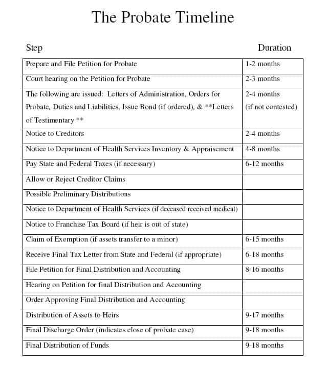 Do not make the mistake of waiting too long to market any real estate, if you’d like to settle the estate as quickly as possible. Once you have been approved as the executor of the estate, you can begin soliciting offers on the real estate. In other words, parallel to handling everything else, you can list with a realtor, get advice, solicit offers and even go into escrow. Escrow will not close until you have acquired letters testamentary / letters of administration. As long as your buyers are aware of this, you will do fine. Be sure to use a realtor that understands probate.